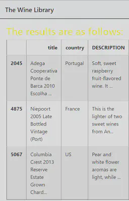 The Wine Recommender System shows top 3 wine list based on user reviews.The Wine Recommender System use Kaggle Wine Taster’s review dataset. To find the top 3 wines, the website uses inverted term frequency for finding similarities between the user query and the wine review.